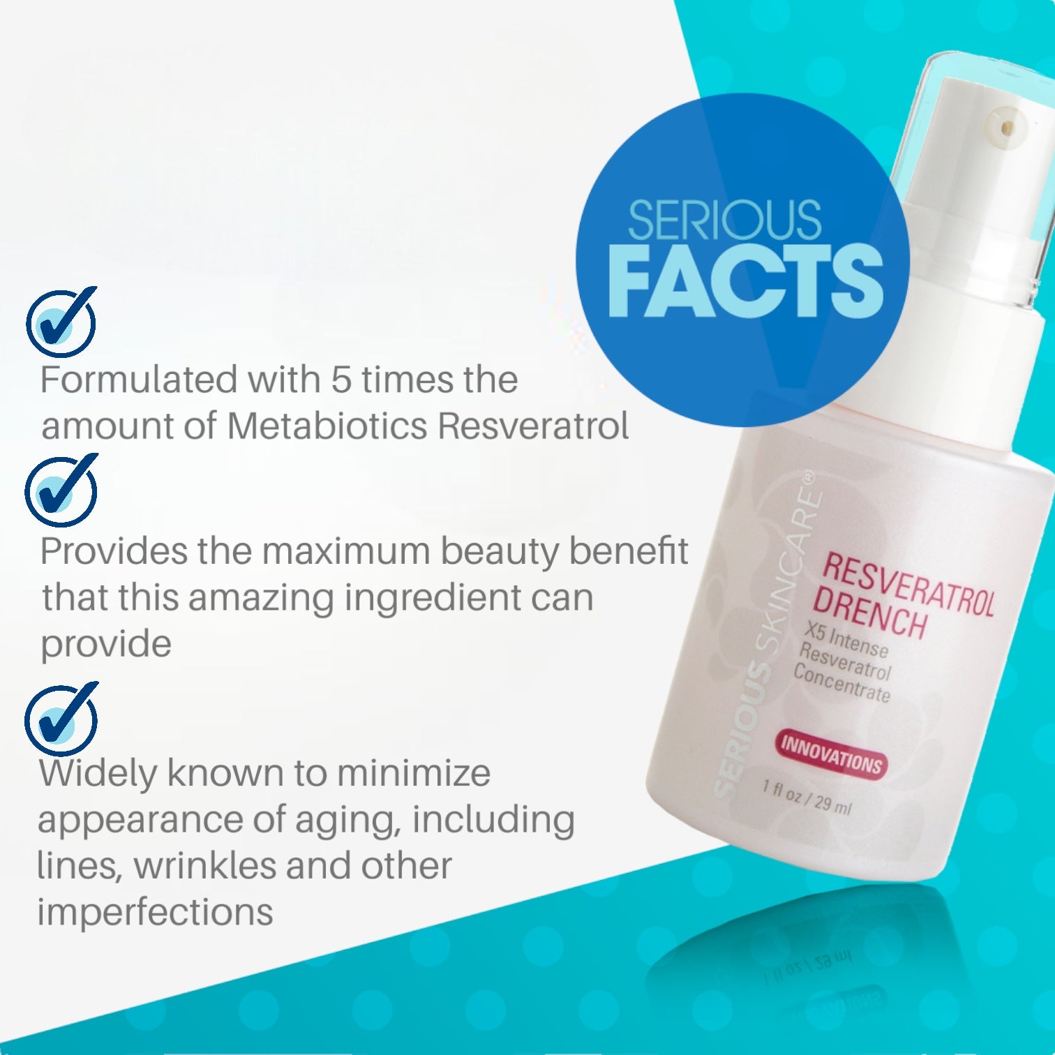 Rich in antioxidants, resveratrol is considered a key ingredient in the fight against aging. An extremely concentrated topical treatment that contains 5X the amount of metabiotic resveratrol typically found in skin treatments. Helps lines, wrinkles and other age-related imperfections soften and become less visible.
